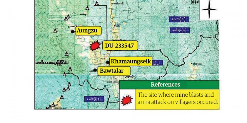 It was at the intersection to Bawtala Village, 20 feet from Hlaingti Creek bridge, that members of ARSA set of an explosive and shot with small firearms.