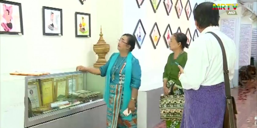 The artwork of exhibition depicts lifestyle and fashion style of Yadanarpon Era’s damsels. Artist, Daw Khin Myo Myint Shwe illustrated the paintings under the guidelines of her senior artists.