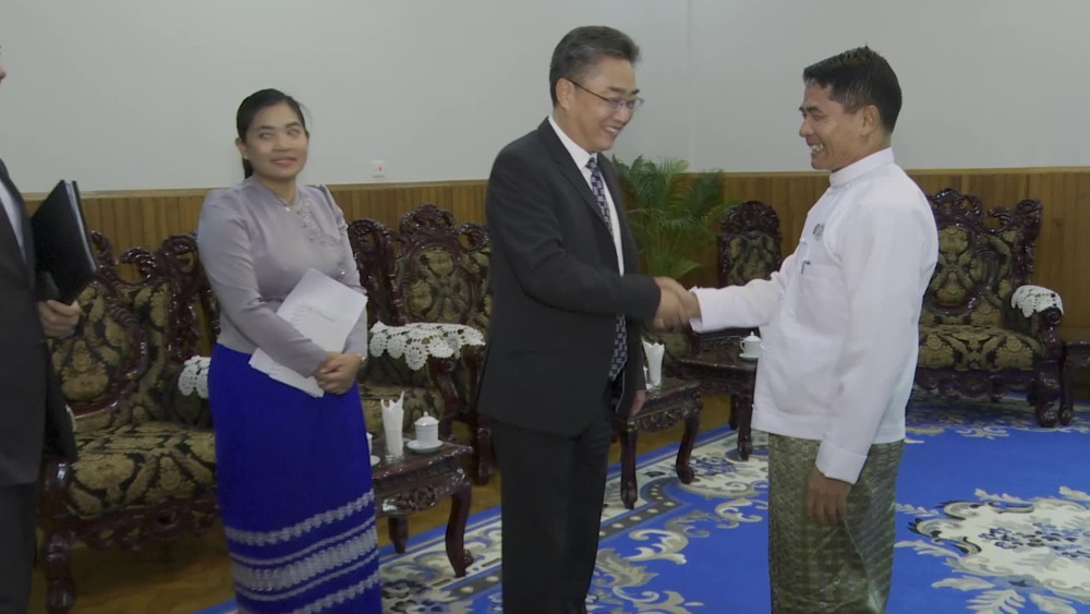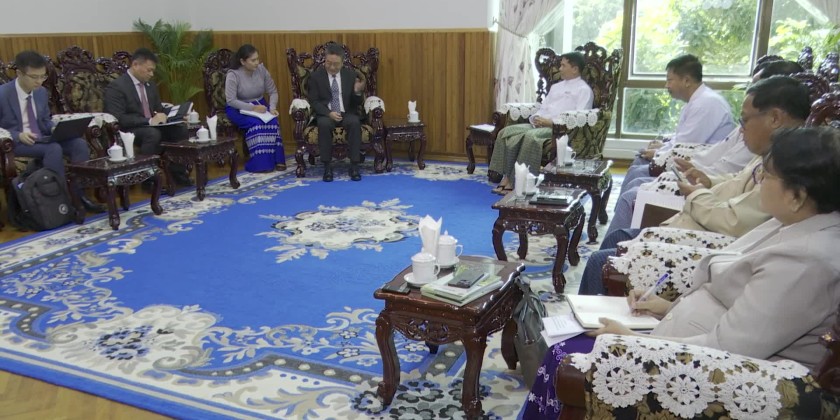 The Union Minister for Agriculture, Livestock, and Irrigation, U Min Naung, met with Mr. Shi Zhongiun, the Secretary General of the ASEAN-China Center, and delegation at the Union Minister’s Office on December 9.