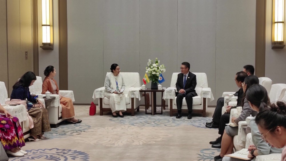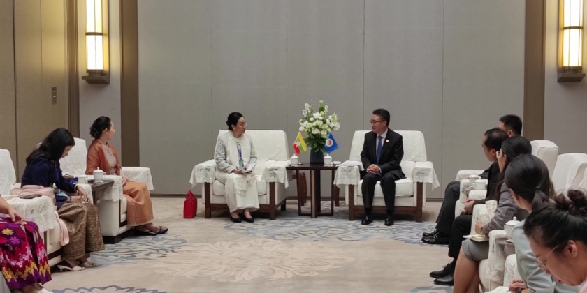 On August 11th, the Union Minister met with Secretary General of ASEAN-China Center Mr. Shi Zhongjun, and discussed matters on promoting tourism market in ASEAN and Myanmar to attract more Chinese tourists.