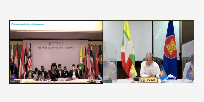 Permanent Secretary of the Ministry of Foreign Affairs U Chan Aye virtually attended the ASEAN Senior Officials’ Meeting (SOM) which was held on 16 February.