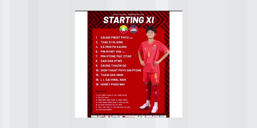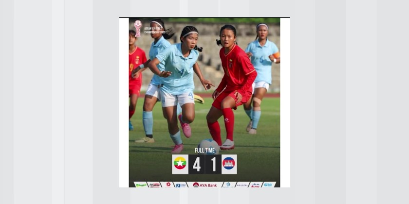 Myanmar’s U-16 Girls’ Team delivered an impressive performance in their Group B match of the ASEAN U-16 Girls’ Championship 2025, defeating Cambodia 4-1 at the Sriwedari Stadium in Surakarta, Indonesia on Saturday. Myanmar took control of the match early, with scoring goals in the 26th and 58th minutes.