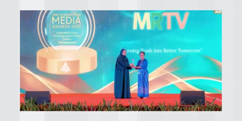 At AIBD Gala Dinner & Awarding Ceremony 2025, the delegation member Director of Myanma Radio and Television Daw Moe Thuzar Aung accepted the award for AIBD Sustainability & Green Technology Award of e-Waste Solutions. The award winning program “Turning Trash into Better Tomorrow” was produced by MITV Channel, an English channel of MRTV, featuring about the waste management process, being carried out by the Yangon City Development Committee at Htein Pin Landfill, the largest landfill in Yangon.
