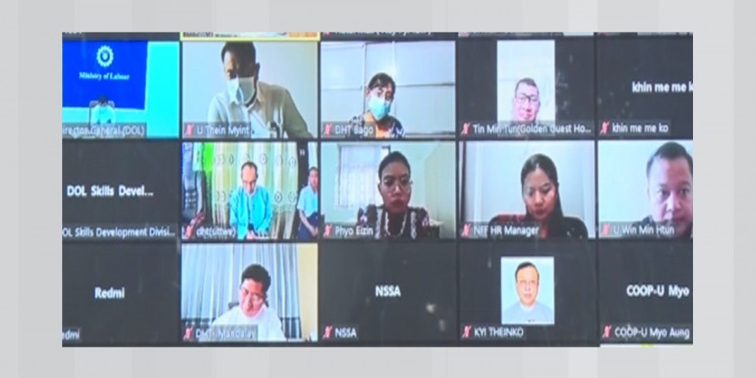 Union Minister for Hotels and Tourism Dr Htay Aung attended the Awareness Programme on Service Jobs and Skills Assessment for Banking Services and Microfinance Services in Ottara District and Dekkhina District in Nay Pyi Taw via videoconferencing on Tuesday.