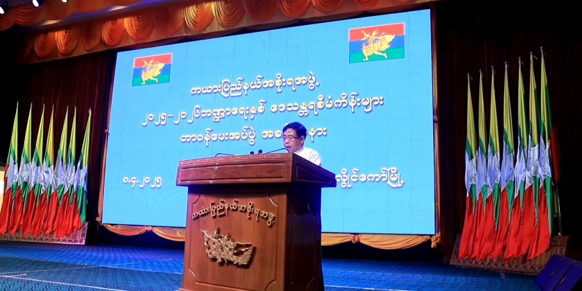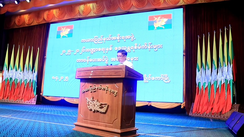 The ceremony of assigning tasks of regional development projects for the 2025-2026 fiscal year was held at the Kayah State Hall in Loikaw on April 8, attended by State Chief Minister U Zaw Myo Tin, state government Ministers, and officials from state, district, and township-level departments.