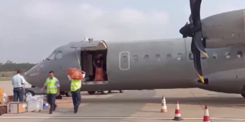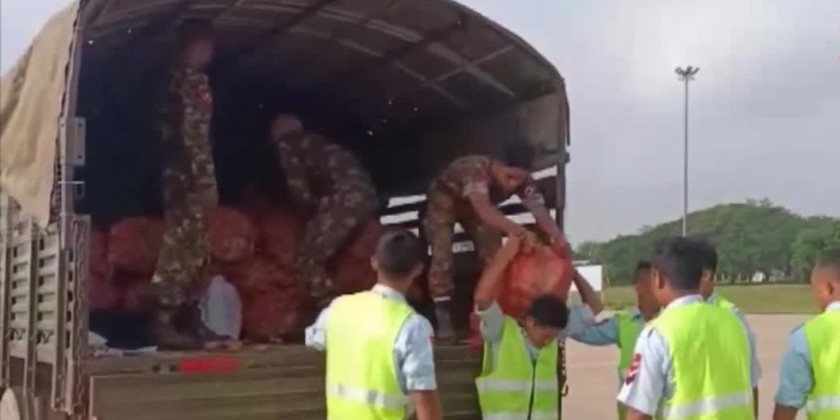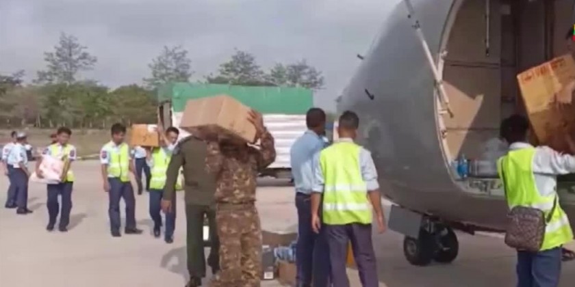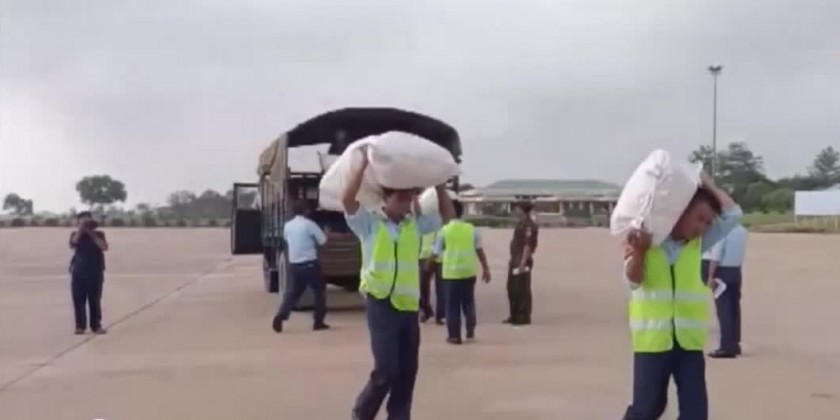 Similarly, , military servicemen and disaster rescue teams who will help in rescue measures and rehabilitation tasks in disaster-hit areas, foodstuff, medical equipment, communication devices, rehabilitation and relief items, tarpaulins, clothes, searching equipment and personal goods donated by departmental staffs and ASEAN countries were transported to Sittwe airport by Tatmadaw aircrafts via Mingaladon airport in Yangon for two times. The relied items arrived by the Tatmadaw aircrafts were accepted by officials and they will be delivered to relevant departments.