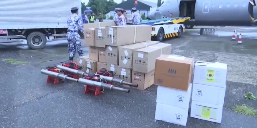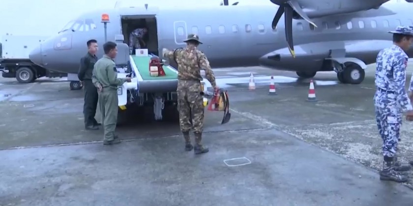 The relied items arrived by the Tatmadaw aircrafts were accepted by officials and they will be delivered to relevant departments.