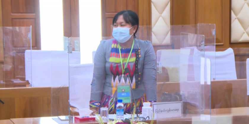The State cabinet members, the State level departmental officials, chairmen of Mohnyin and Hpakant township administrative bodies, and officials from social organizations reported assistance measures for displaced persons from Sae Zin area in 13 temporary relief camps, arrangements for their food, living and health, plans to provide assistance by NGOs and arrangements for education of the children in the relief camps.
