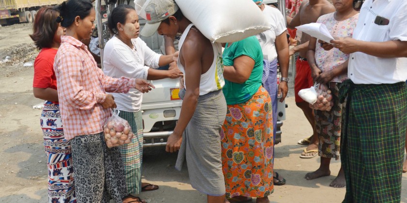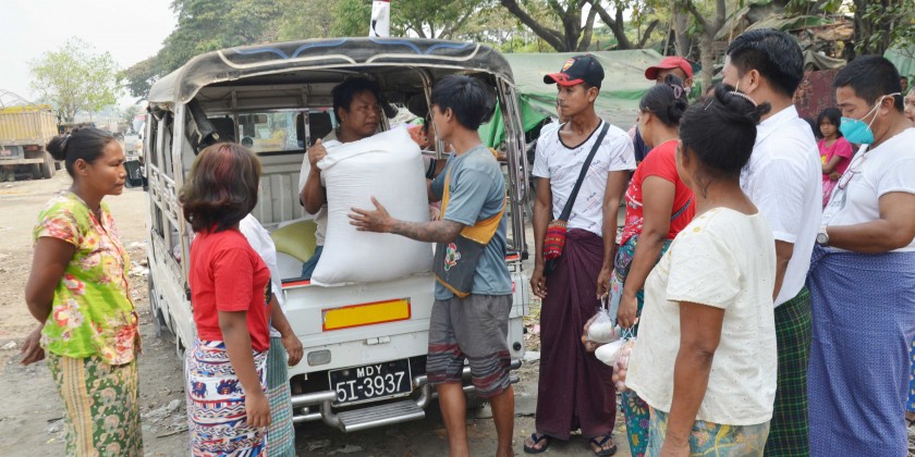 For the convenience of people with no regular income during Thingyan holidays stay home period, the government provides 5 items of rice, edible, salt, bean and onion.
