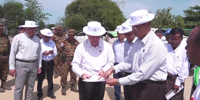 Rakhine State Chief Minister U Htein Lin, accompanied by officials on Sunday inspected the IDP Camp Management Committee office construction at HmhanSi intersection in Sittwe, and instructed the provision of necessary office equipment. They also addressed the arrangements for fire safety measures and other requirements through coordination with relevant departments and camp officials.