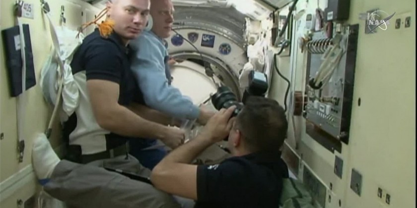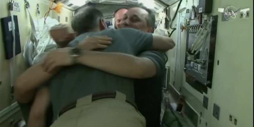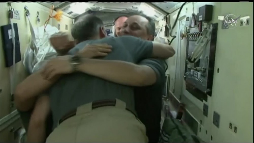 A NASA astronaut is catching a Russian ride back to Earth after a US record-breaking 355 days at the International Space Station.Mark VandeHei boarded a Soyuz capsule on Wednesday alongside the Russian space agency's Anton Shkaplerov and PyotrDubrov, who also spent the past year in space.The three are scheduled to land in Kazakhstan later on Wednesday their return will follow customary procedures.