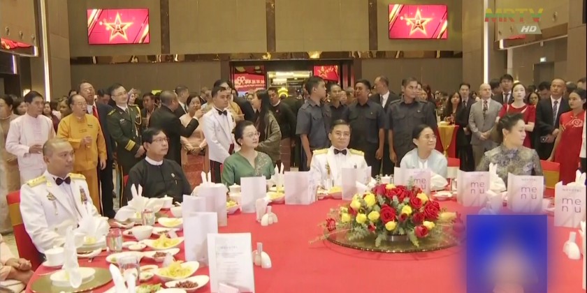 Following this, the Chinese Ambassador to Myanmar and the Chinese Military Attaché hosted a gala dinner for all attendees. It is reported that the event was attended by Chief of General Staff (Army, Navy, Air) General Kyaw Swar Lin and his wife, high-ranking military officers from the Office of the Commander-in-Chief and their wives, Yangon Region Chief Minister U Soe Thein and his wife, the Commander of Yangon Command, region government ministers, ambassadors from foreign embassies in Yangon, chargés d'affaires, military attachés, and invited guests.