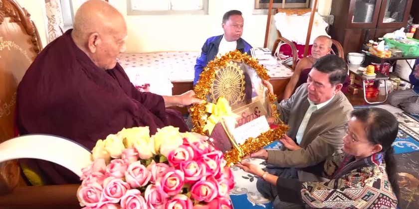 The Rakhine State Chief Minister U Htein Lin and spouse who is a Patron of State Women’s Affairs Committee, Chief Justice of State High Court, State Government members and Departmental officials paid homage to the Presiding Sayadaw of Vimala Dhammnada monastery in Sittwe, offered the dry provisions and attended the training completion ceremony of basic sewing training for ethnic youth on January 27.