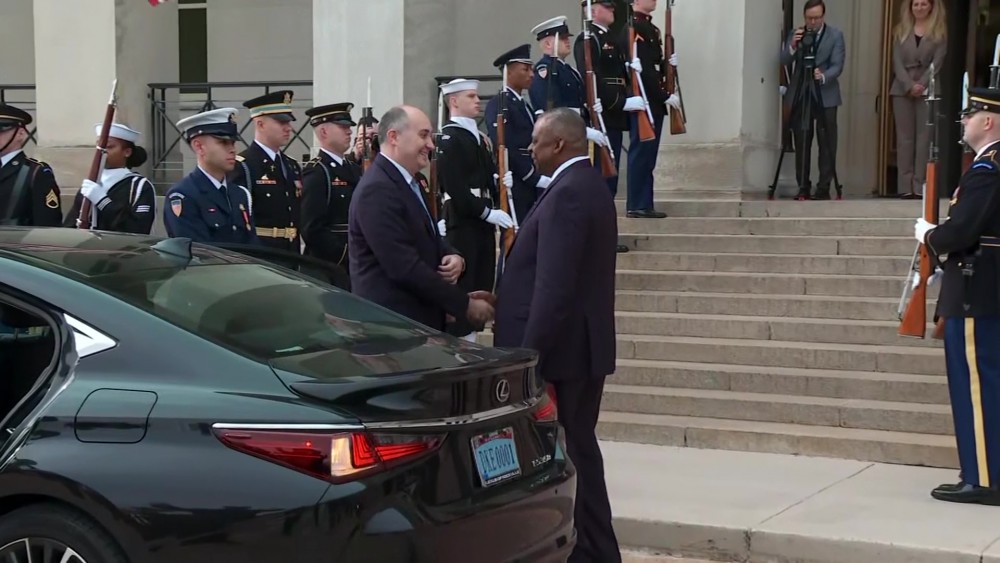U.S. Defense Secretary Lloyd Austin welcomed Georgian Defense Minister Juansher Burchuladze to the Pentagon for bilateral discussions and announced the approval by Congress to fund $33 million in security assistance for Georgia.