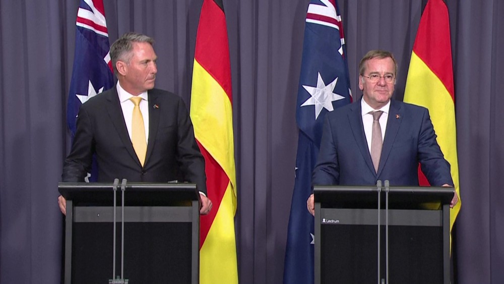 Australia's Minister for Defense Richard Marles and his German counterpart Boris Pistorius said after meeting at Parliament House in Canberra that the two nations will pursue a status of forces agreement that will make it easier for their defense forces to operate from each other's countries. Additionally, they announced that both countries had signed a letter of intent regarding space cooperation and that the Australian government will sign a letter of cooperation with German missile manufacturer TDW.