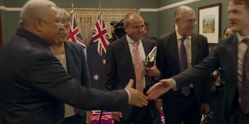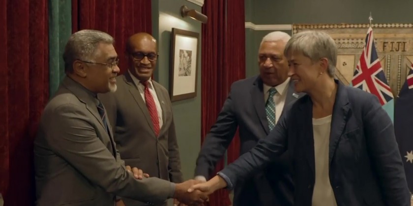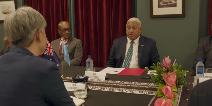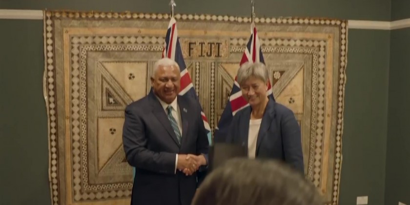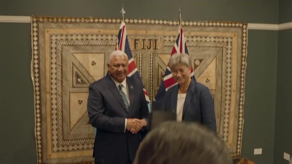 Australia's new Foreign Minister Penny Wong met with Fiji's Prime Minister Frank Bainimarama on Friday. Wong's visit to Fiji came as Chinese Foreign Minister Wang Yi arrived on the remote Pacific nation of Kiribati.