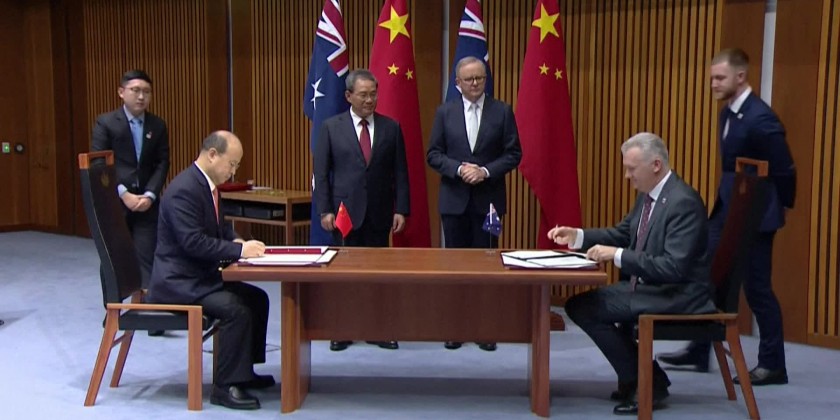 Australian Prime Minister Anthony Albanese and Chinese Premier Li Qiang attended an official signing ceremony at Parliament House following closed-door meetings.