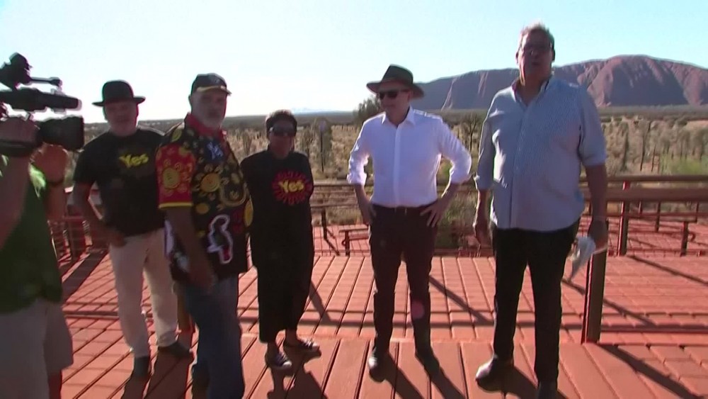 Albanese travelled to the sacred Aboriginal site of Uluru, a giant red monolith in central Australia, on a media blitz to try to persuade sceptical voters to recognize Indigenous people in the 1901 constitution for the first time.