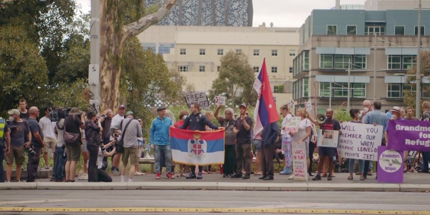 But the Australian Border Force rejected his exemption as invalid and barred him from entering the country. A court hearing on his bid to stave off deportation was set for Monday, a week before the season's first major tennis tournament is set to begin. A small group of supporters of tennis star Novak Djokovic held a protest on Friday outside the Melbourne hotel.