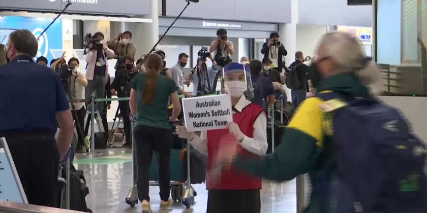 The Australian Olympic softball team arrived in Japan on Tuesday, with the squad among the earliest arrivals for the postponed Tokyo 2020 games. A plane carrying the team touched down at an airport in Narita, where the squad will travel from to a camp in Ota City, north of Tokyo.