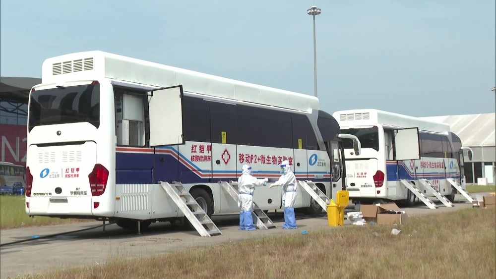 This mobile vehicle can complete the whole process from sample collection, treatment of sample, nucleic acid extraction and detection, and report publication. The maximum detection volume of each vehicle can reach 10,000 cans a day.
