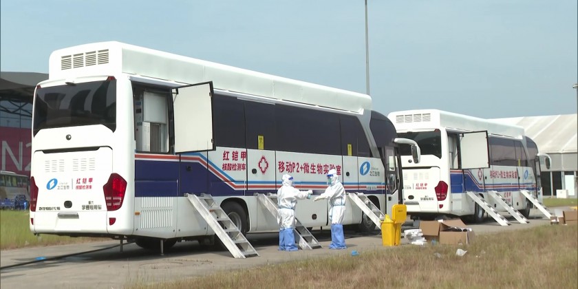 The automated mobile nucleic acid detection vehicles have been introduced in the makeshift hospital in Shanghai. With the flexibility and other high-tech applications on the vehicles, they can effectively improve the nucleic acid detection ability in the hospital.