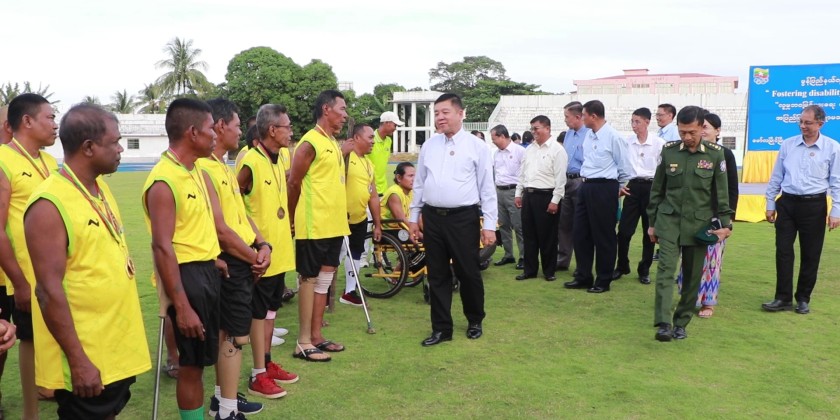 Mon State Chief Minister U Aung Kyi Thein, the State Chief Justice, state ministers, officials, and sports enthusiasts attended. The Chief Minister, the State Chief Justice, and state ministers presented first, second, and third-place prizes to the athletes according to competition categories, and the Chief Minister warmly greeted and encouraged the award-winning athletes with disabilities.