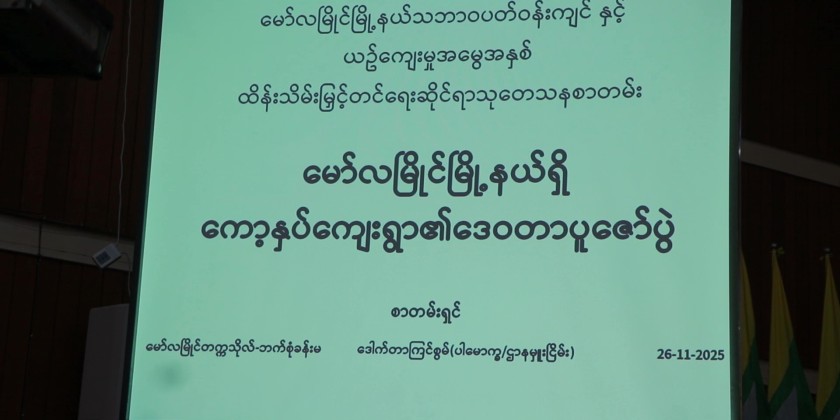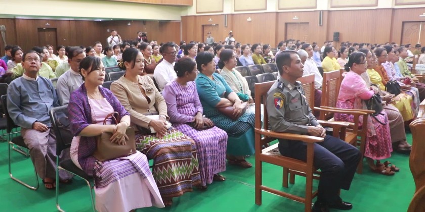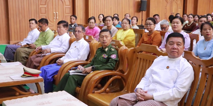 In the morning on November 26, the Mon State ceremony for the reading of papers on environmental conservation and the preservation and promotion of cultural heritage was held at the Multipurpose Hall of Mawlamyaing University, where the Chief Minister delivered opening remarks.