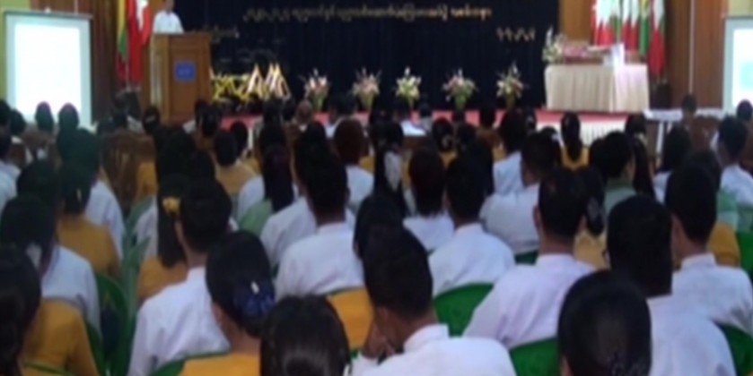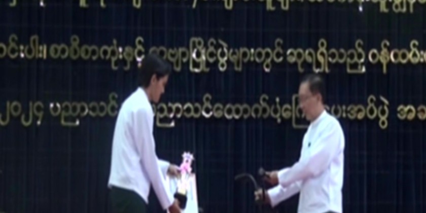 Then, the Union Minister, Deputy Ministers and officials presented awards to the outstanding students who passed the 2022-23 matriculation examination with distinctions, outstanding service personnel in the trainings of Civil Service Academy and ministerial level trainings, Championship winner team of SAC Cup in commemoration of 75th Anniversary Diamond Jubilee Independence Day, winners of Ministerial level article, essay and poem competition in commemoration of 76th Anniversary of Union Day.