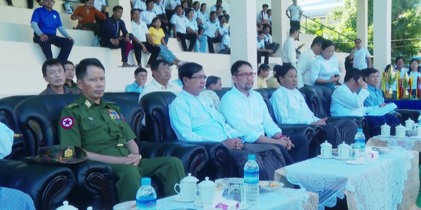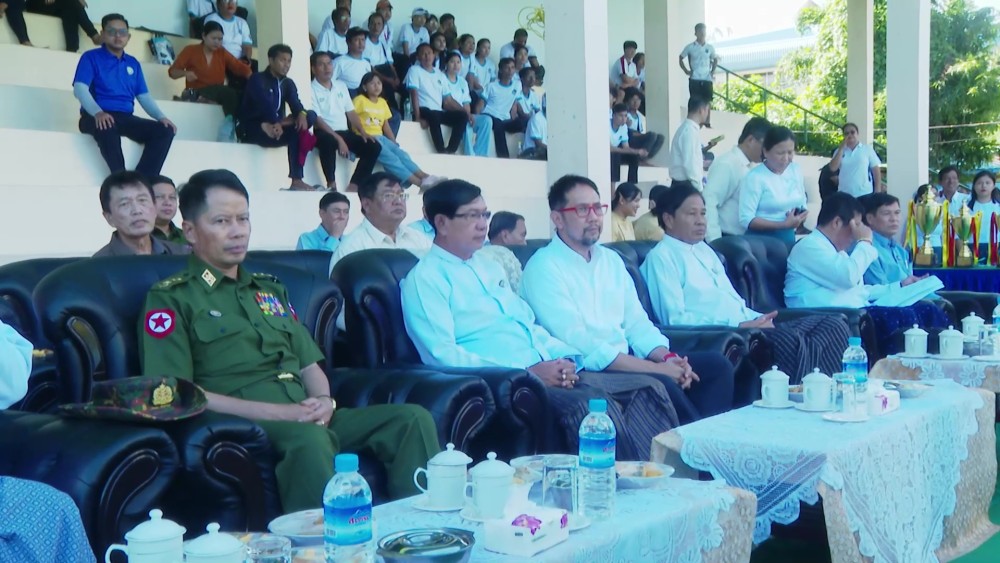 First, the Yangon Region Chief Minister U Soe Thein, region ministers, and officials attended the final match, watching and supporting the men's doubles competition between the Yangon Region team and the Bago Region team.