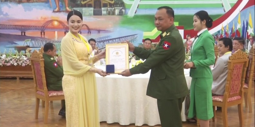 Member of the State Security and Peace Commission Chief of General Staff (Army, Navy, Air) General Kyaw Swa Lin attended the event and gave a congratulatory speech. This was followed by presenting of honorary awards and certificates to the actors, script writer, director and production team of the film "Battle of Taung Hkam" as well as the winners of military songs, poem and novel competitions.