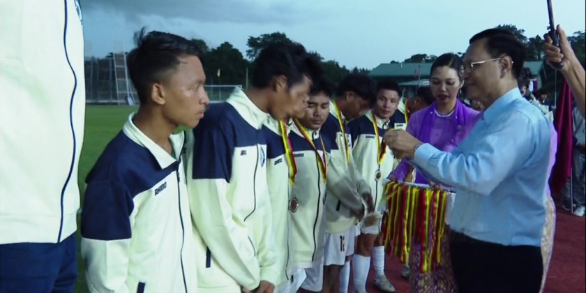 During the ceremony, Union Minister for Education Dr Chaw Chaw Sein also provided food allowances for students from seven Education Degree Colleges who were unable to return home. Earlier in the day, the third-place match saw Mandalay Zone (B) defeat Yangon Zone (B) 5–4 on penalties after a 1–1 draw.