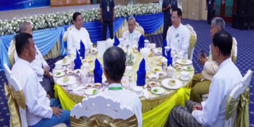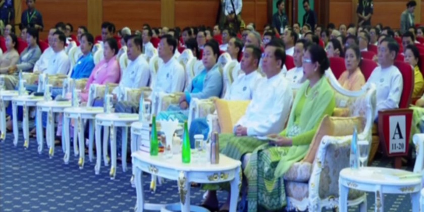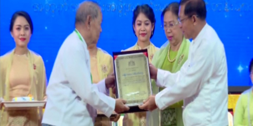 First, the Senior General and party viewed around the display of the biographies, photos and books of the award winners at the ground floor of the MICC-II. At the ceremony, the Senior General and party enjoyed the stage performance of the MRTV’s staff and screening of a video clip in honour of the award presenting ceremony.