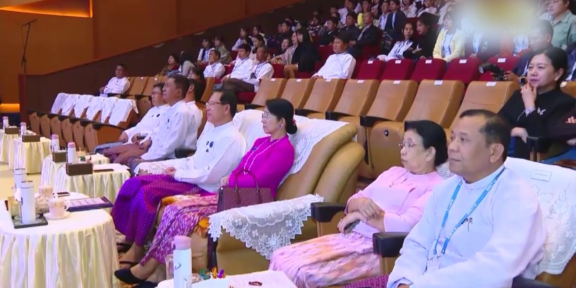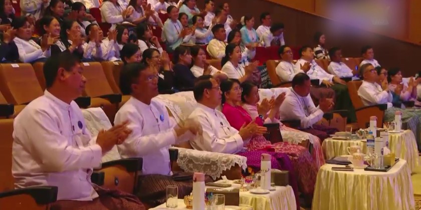 Union Minister U Maung Maung Ohn attended the ceremony and made a speech, urging the staff to continue maintaining MRTV’s dignity and work together to further improve it as a state media organization.