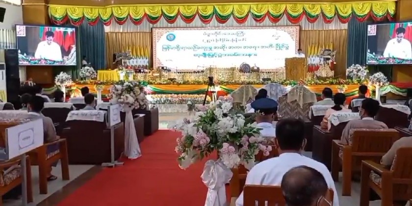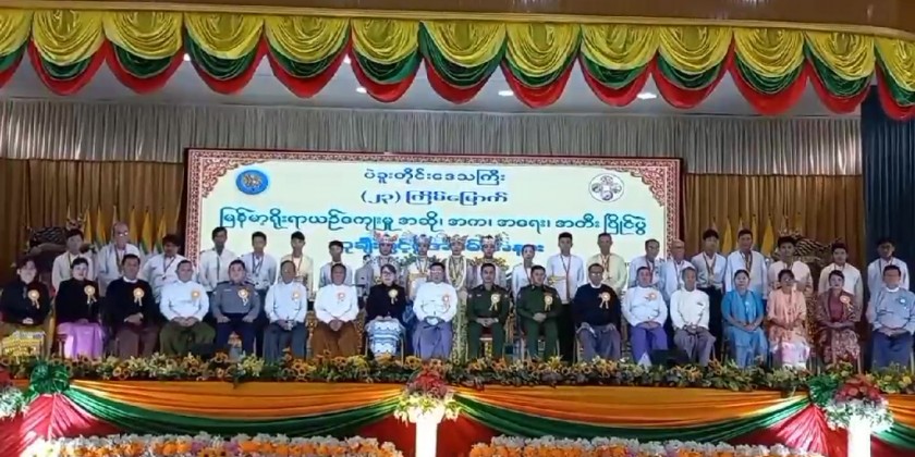 Next, the Chief Minister, chief justice of region high court, commander of No (77) Light Infantry Division and the region minister for security and border affairs awarded the prizes to the winners and the first prize winner of singing completion in the amateur level (second grade) performed with Myanma Gonyay song.
