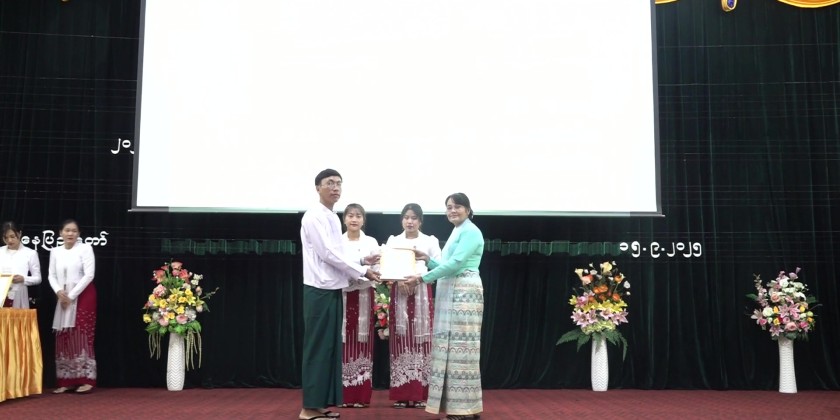 The Office of the Auditor General of the Union, Staff Welfare Committee held an awards ceremony today at 10:00 a.m. in a hybrid format. The event, which took place in the Nawarat Hall at the OAGU office in Nay Pyi Taw, honored the children of staff members who passed the matriculation exam for the 2024-2025 academic year.