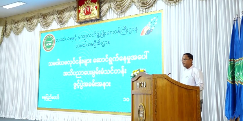 Union Minister U Hla Moe attended the ceremony and delivered the opening address. In his opening address, Union Minister U Hla Moe stated that the training is intended for the department's officers and staff serving in the Cooperative Department, as well as officials from cooperative societies.