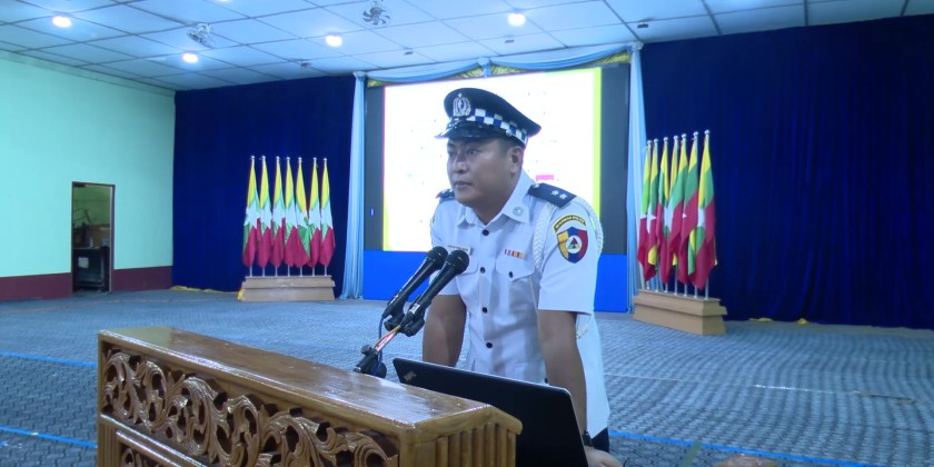 First, Chief Minister U Khet Htein Nan delivered an opening speech. He stated that to reduce vehicle and road accidents within the state, monthly meetings are held to discuss and coordinate necessary actions, including raising awareness. He also mentioned that efforts are underway to expand and install more traffic lights, and annual funds are allocated to ensure that road signs, markings, and signaling systems are consistent with laws and directives. The Chief Minister emphasized the importance of widespread public awareness of the regulations. He urged attendees to remember the information shared at this awareness event and to continue disseminating it to their communities.