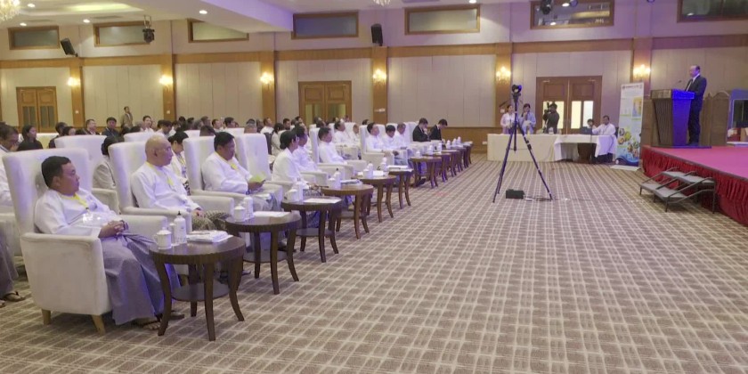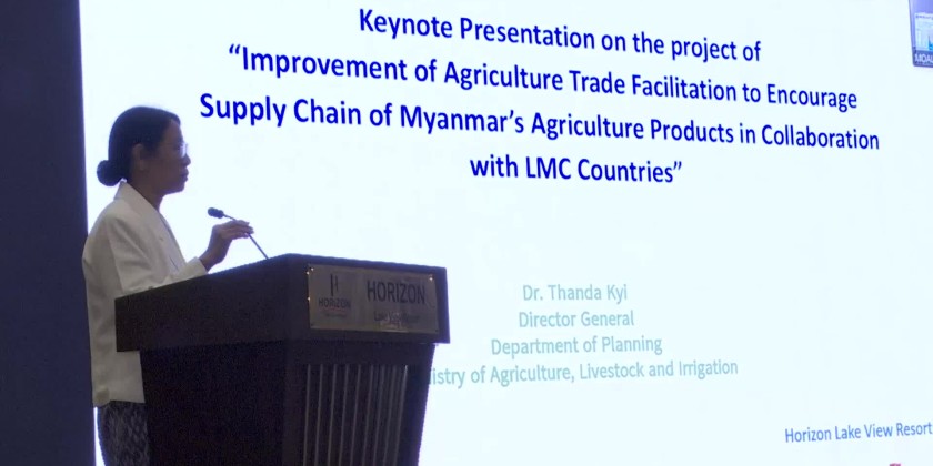 The opening ceremony of the “Awareness Training Workshop on the Exporting Guidelines and Requirements for Myanmar\s Agricultural Commodities to China to Support Trade Facilitation” conducted under the Project on the “Improvement of Agriculture Trade Facilitation to Encourage Supply Chain of Myanmar’s Agriculture Products in Collaboration with LMC Countries” which included in the Mekone-Lancang Cooperation Special Fund Projects, was held at the Horizon Lake View Resort in Nay Pyi Taw on January 21 with the attendance of Union Minister for Agriculture, Livestock and Irrigation U Min Naung.