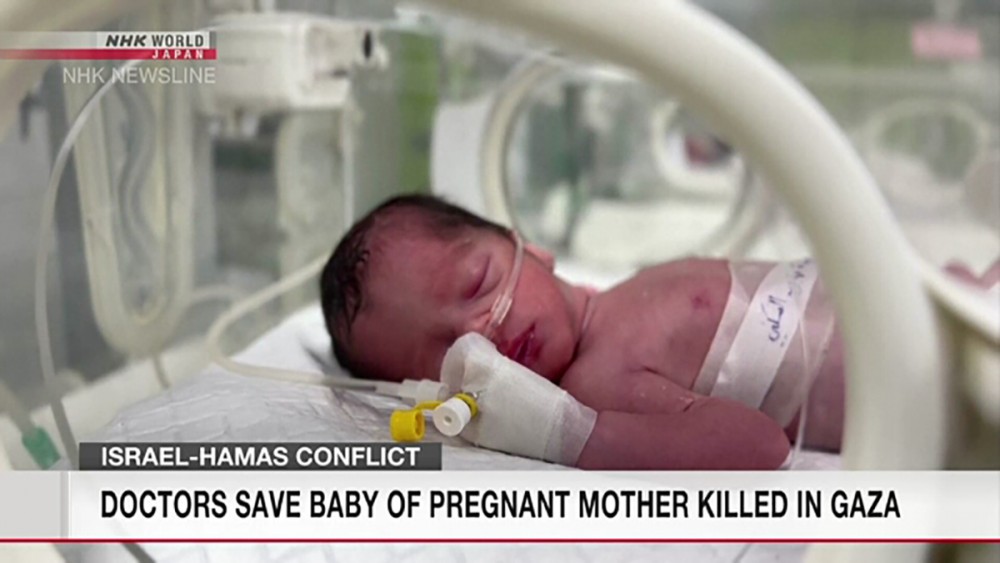 The Associated Press and other media said a baby girl was delivered from the womb of a Palestinian woman killed during Israeli air strikes in the city of Rafah in southern Gaza.