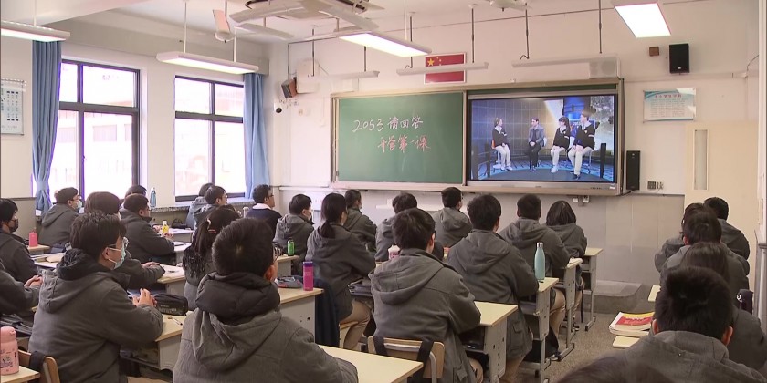 About 1,400 teachers and students from the whole school participated in the flag-raising ceremony in the playground. In Luwan Senior Middle School, the first lesson of the new semester used the science fiction film. The school also took multiple measures, using AI psychological theme cartoons and other means to help students go through the adaptation period.