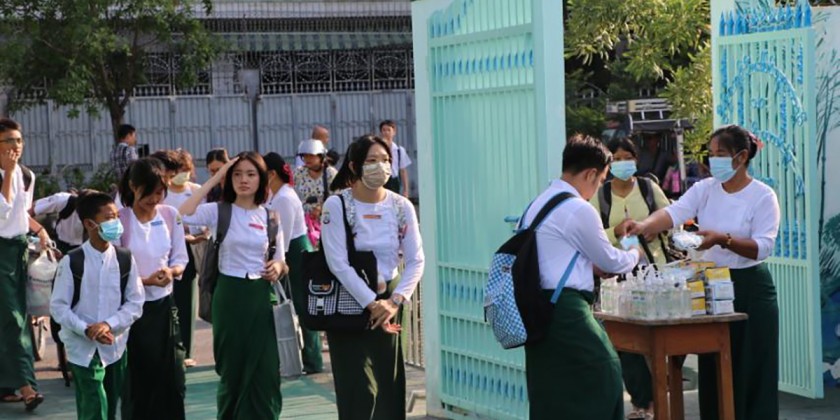 It is a free education system and the school enrollment is free of charge. Moreover, students are provided with text books, note books, stationary and uniforms. For the security and safety of students, members of Myanmar Traffic Police and Myanmar Police Force, Fire brigade members and officials concerned are conducting security measures both inside and at the surrounding areas of schools.