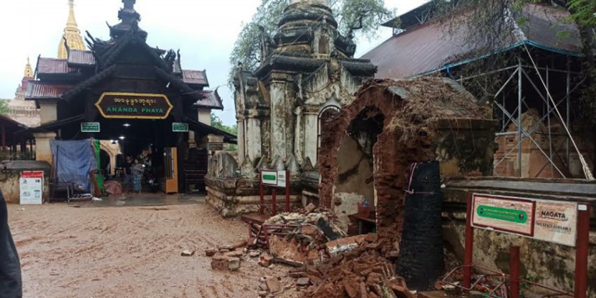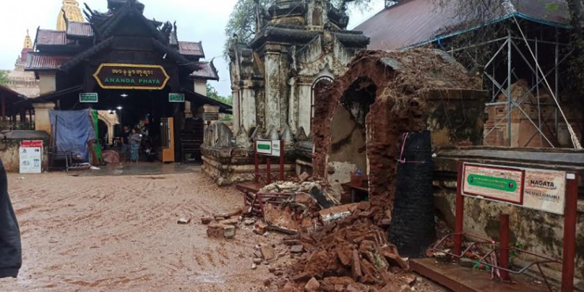 The Chairmen of Nyaung U District Natural Disaster Management Committee and the township Natural Disaster Management Committee and members are conducting close supervision and officials of the Department of Archaeology and National Museum (Bagan-Branch) will carry out the repairing works as soon as possible to prevent further collapse, it is learnt.
