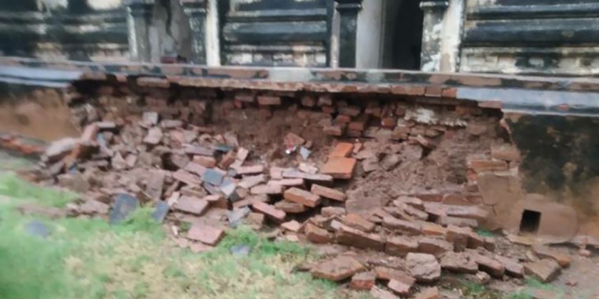 The ancient buildings were slightly damaged by the torrential rains on 13th and 14th May in the Bagan Archaeological Zone in BaganNyaung U Township, Mandalay Region. Due to the heavy rains, the slight damages were happened at the northern archway of Ananda temple and other pagodas and temples.