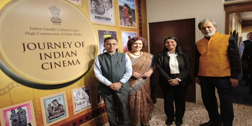 Bangladesh celebrated the 111th anniversary of the Indian film industry with the inauguration of the 'Journey of Indian Cinema' exhibition at the Indira Gandhi Culture Centre in Dhaka on Sunday.