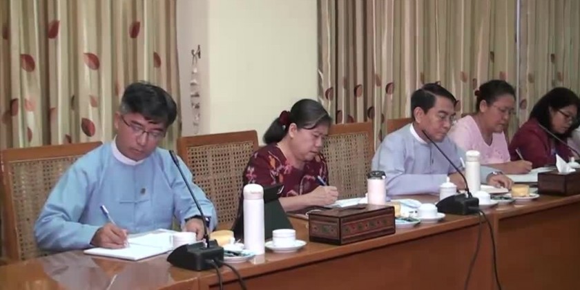 Governor of the Central Bank of Myanmar (CBM) Daw Than Than Swe held a meeting with officials from Siam Commercial Bank, Bangkok Bank, Kasikorn Bank and Krung Thai Bank at the meeting hall of the Yangon branch of the Central Bank of Myanmar.