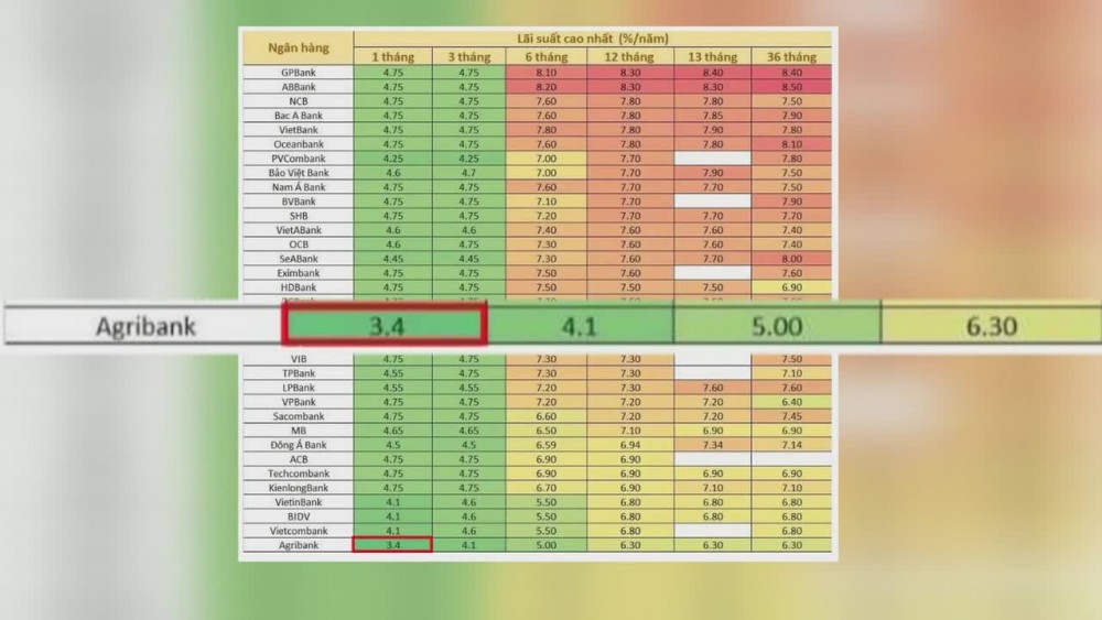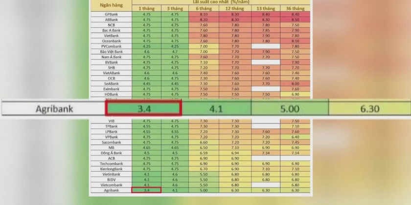 Many banks have also sharply reduced deposit interest rates with deposit terms of 6 months or more. Agribank currently has the lowest interest rate at 3.4%/year for 1-month term deposits. Most of the other commercial banks have reduced deposit interest rates for terms over 6-12 months to less than 8%/year.