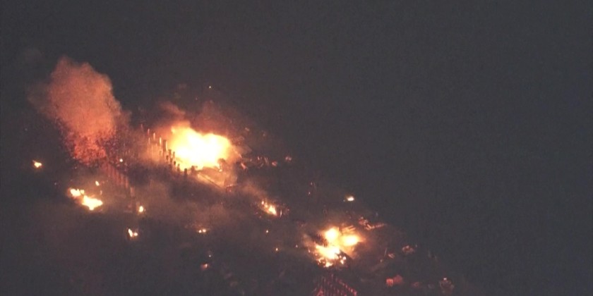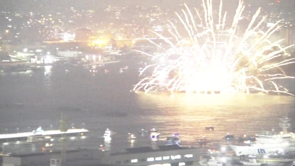 Barges carrying fireworks ablaze in Japan, five flee into sea
