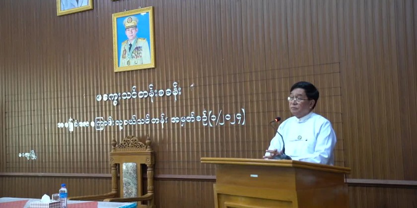 At 10 AM on May 6, Region Chief Minister and Region Ministers visited the camp of basic aviation training course for youth, viewed and encouraged the studying of the training and provided cash assistance for the trainees.At the camp, the Chief Minister together with the Commander of West Airbase MaJ-Gen Tun Win, Commander of Magway Airbase Col. Than Naing Nyunt and Commander of Magway Military station viewed the military parade training, inspected trainee’s mess hall and met with the trainees at the training hall.