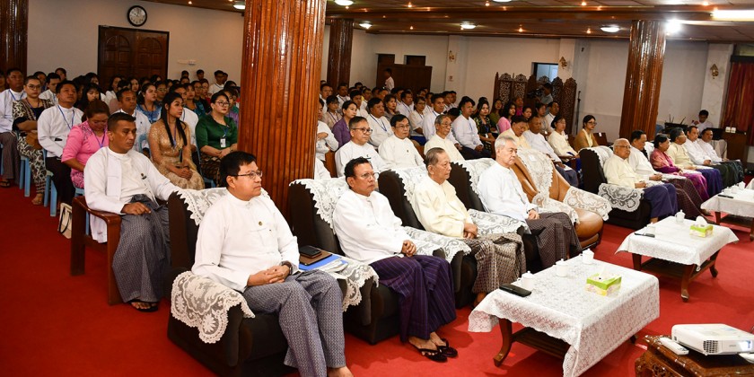The opening ceremony of Basic Diplomatic Skills Training Course (No. 46/2024) to be opened by the Ministry of Foreign Affairs at the Ministry’s Lokanat Hall in Nay Pyi Taw, as well as at the Wunzin Min Yazar Hall in Yangon. The Deputy Prime Minister and Union Minister of Foreign Affairs, U Than Swe, attended the event in Yangon and delivered the opening remarks.